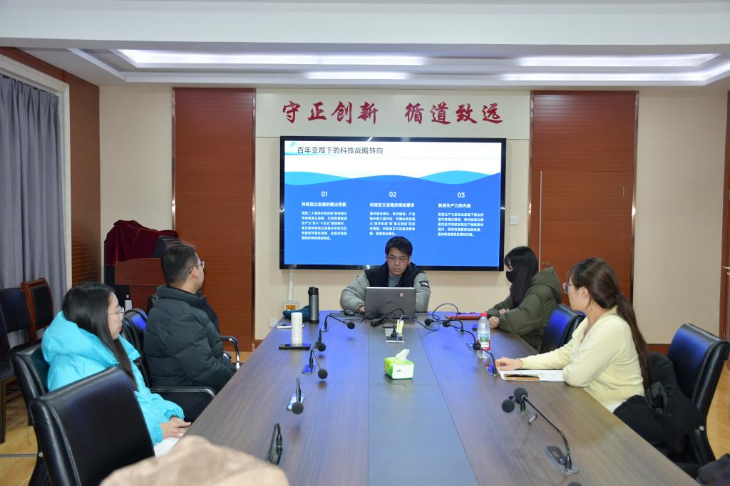 为深入学习贯彻党的二十届四中全会精神,12月12日,公司研究生会在二办203举办了“四中全会定航向,改革宏图谱华章”学术沙龙系列活动第二期。本期活动主题为“科技自立强动能,新质生产赋新篇”,由徐国涛、王蒙召、张禧、郁晓薇4名研究生同学担任主讲人,公司30余名研究生参加活动。