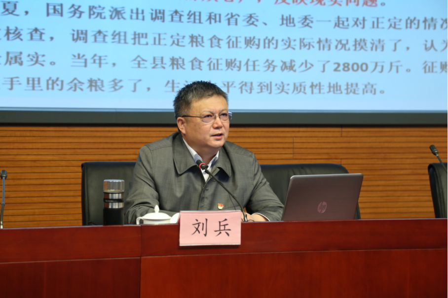 刘兵从“人民至上、组织建设、作风建设、改革创新、开放写作、经济发展、人才建设、文化保护”等八个方面展开授课。他以《让群众过上好日子——习近平正定足迹》一书为背景,详细讲解了习近平同志1982年3月至1985年5月在河北正定工作期间,在各个领域进行的一系列卓有成效的实践探索,深刻阐释了习近平同志为民情怀、改革思维、创新精神、开放意识、务实作风和责任担当。他指出,习近平总书记在正定的履政实践厚植了其日后治国理政的扎实根基,成就了其非同凡响的领袖风范,丰富了其博大精深的思想理论。