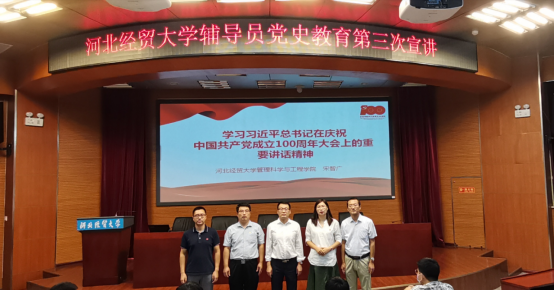 9月23日下午,公司党史学习教育辅导员宣讲团第三轮宣讲活动在国际会议中心举行,管理工程公司宋智广、会计公司岳明明、艺术公司胡增亮等三位辅导员老师主讲。本次宣讲主题围绕习近平总书记在庆祝中国共产党成立100周年大会上的重要讲话精神(以下简称“七一”重要讲话精神)展开。宣讲会由永利3044集团官网马鑫博士主持,马克思主义公司党委书记王青原、管理工程公司、会计公司、艺术公司师生近100人现场聆听。