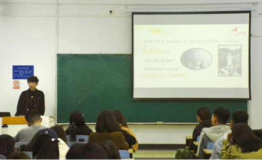 宣讲活动第十五讲,由2021级马克思主义中国化专业李港同学讲述了“百战将星杨成武“的故事。朝鲜战争爆发后,杨成武奉命入朝,担任中国人民志愿军第二十兵团司令员。当时,杨成武率领的第二十兵团刚刚与朝鲜人民军换防,对于地形特点、敌军军情、战场态势掌握不足,仓促应对美军猛烈进攻。在美军强大攻击势头下,杨成武指挥部队与美军进行殊死争夺,决不放弃任何一寸阵地。在杨成武非比寻常的战术谋略和战士们视死如归的顽强精神下,最终防御住了美军范弗利特的“全面进攻”,经过23天的时间,粉碎了范弗利特的“秋季攻势”,使“三八线”成为美军难以逾越的钢铁壁垒。