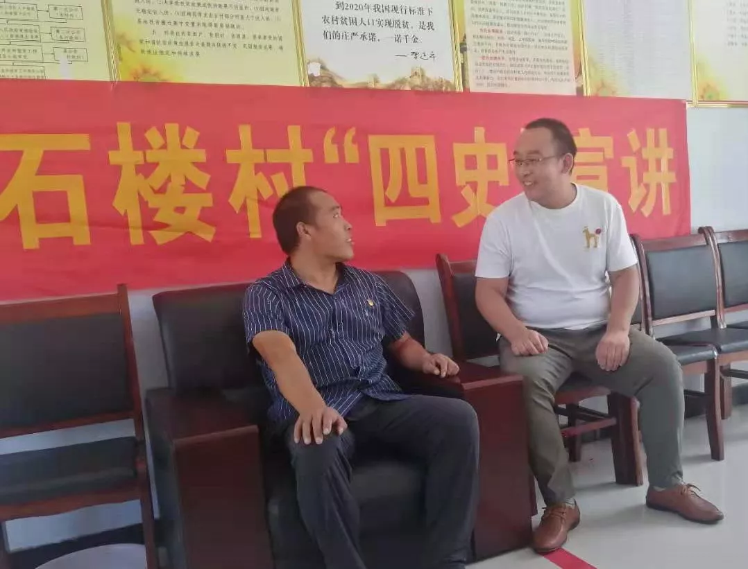 宣讲结束后,王丽斌与部分人员进行了深入交流。石楼村党支部书记王玉杰告诉王丽斌,石楼村在上级部门正确领导下,以优异成绩完成了脱贫攻坚任务,乘势而上,接续奋斗,持续进行美丽乡村建设,全面推进本村振兴。并以建党百年这一重要历史节点为契机,带领全村父老乡亲继续投身新时代赶考的历史洪流,努力为乡村振兴添砖加瓦。群众代表也满含深情地感慨党的似海深情,以质朴的语言表达着对党的无限感激和美好祝福,而这感激和祝福是实实在在发自内心的。