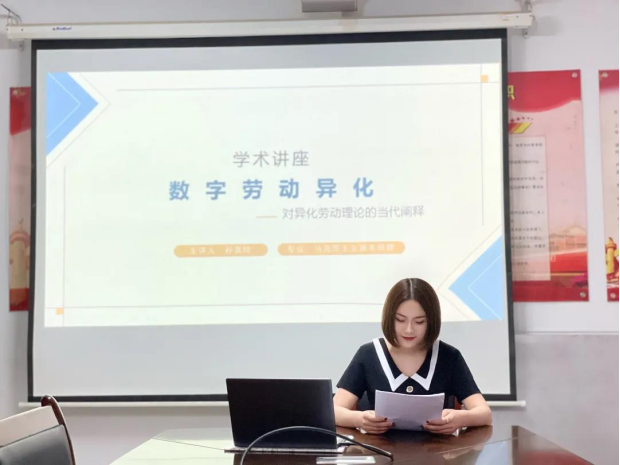 本次讲座由2020级马克思主义基本原理专业的孙美玲同学主讲。首先,孙美玲同学介绍了主要讨论的问题,即何为数字劳动、数字劳动异化的表现、数字劳动对异化劳动理论是突破还是加固以及争取非异化劳动的可能。其次,她具体分析了国内外学者对数字劳动的界定,并表示数字劳动异化表现为数字劳动商品化、数字劳动产品异己化、数字劳动者类本质化、数字劳动异化导致的社会等级分化。最后,孙美玲同学指出,由于现实的复杂性和不可预测性,消除数字劳动异化需要多方面的共同努力才能实现。