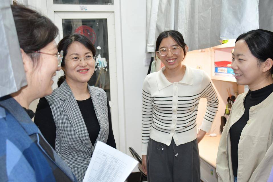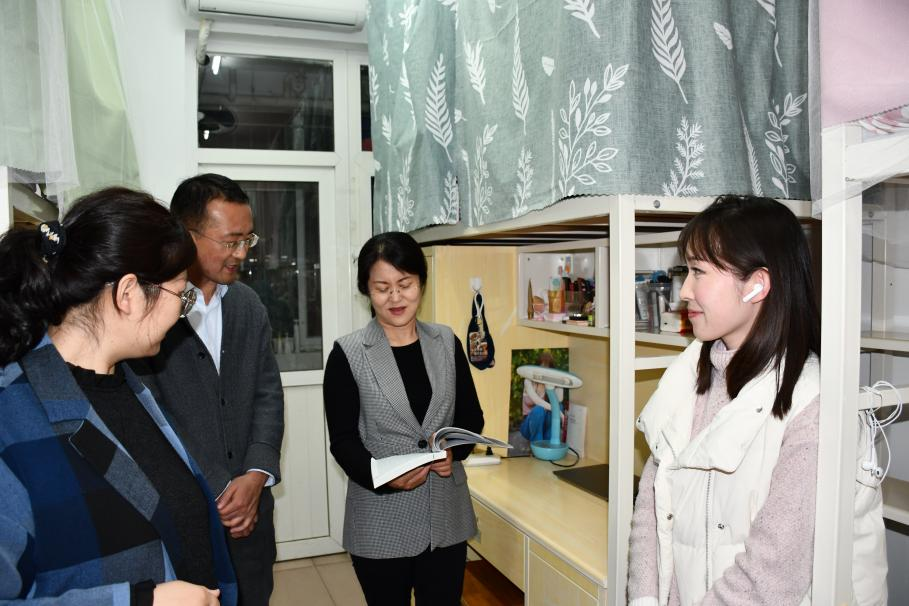 为深入了解马院员工的学习和生活状况,4月3日晚,公司党委书记董佰壹、副书记马鑫、21级辅导员赵志浩、22级辅导员路艳丽一同走进员工宿舍看望在校员工。