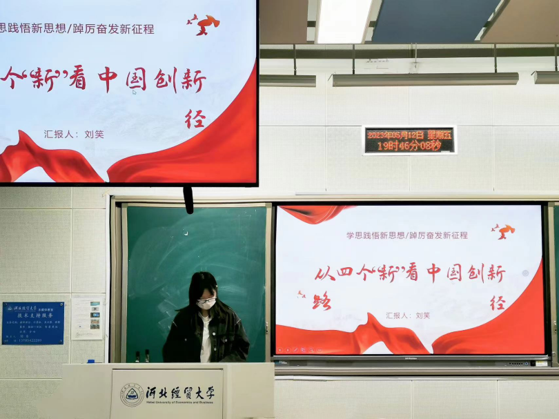 刘笑同学主讲的题目为《从四个“新”看中国创新路径》。该同学认为,站在新的历史交汇点上,党中央深刻洞察时代发展大势,审时度势,提出要开辟发展新领域新赛道,不断塑造发展新动能新优势,这对我国应对世界百年未有之大变局、全方位增强国家综合国力、夺取中国式现代化新的伟大胜利发挥着至关重要的作用。在四个“新”的实践中,要把科技创新作为最根本、最核心、最关键、最可持续的力量,坚持中国特色自主创新道路,坚持把人才作为第一资源,坚持统筹发展和安全,坚持科技创新与制度创新双轮驱动,推动完善国家创新体系,实现高水平科技自立自强。
