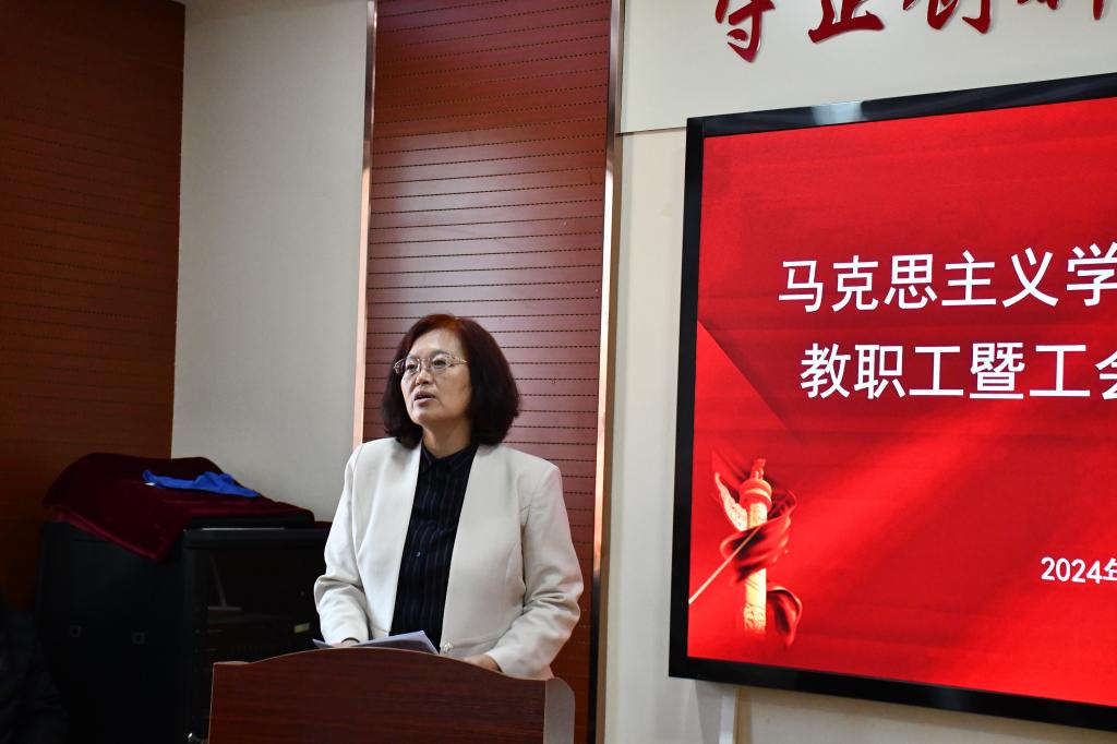 会上,党委书记董佰壹致开幕词,她充分肯定了2024年公司在党建、教学、科研和社会服务等方面取得的主要成绩,希望全体教师持续聚焦立德树人根本目标,全力打造一流党建品牌,不断创新思政课教学模式,提高教研科研能力,努力培养更多担当民族复兴大任的时代新人。