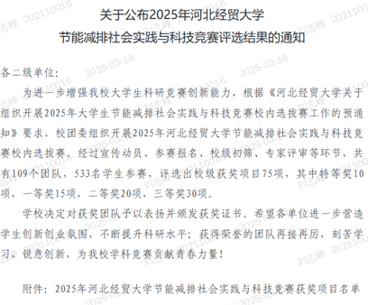 近日,公司由校团委组织的2025年节能减排社会实践与科技竞赛校内选拔赛公布了评选结果。本次竞赛共有109个团队、533名员工参赛,最终评选出75项校级获奖项目。