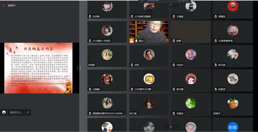 为深入学习贯彻党的二十大精神,系统掌握习近平新时代中国特色社会主义思想。11月11日晚,公司开展了以“罗尔斯的公平正义与中国式现代化的伦理诉求”为主题的宣讲活动。此次宣讲采用线上模式,原理教研室党员、研究生支部党员、积极分子等100余人参加了此次会议。