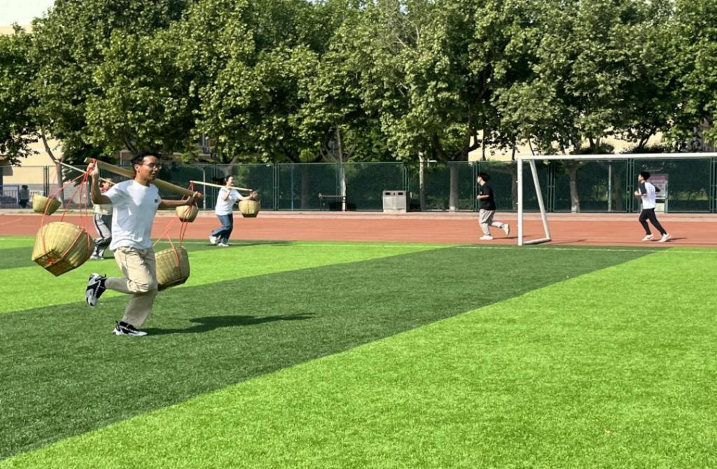 5月8日上午,在永利3044集团官网的运动场上,进行了一堂别开生面的思政课,这同时也是《思想道德与法治》课程的一次沉浸式实践教学活动。为更好地弘扬红色文化、赓续红色血脉,挖掘革命精神的时代价值,授课教师周娜对课程教学过程进行了精心的设计。课堂主题是“重温峥嵘岁月,传承红色基因”。实践教学共包括“齐心协力走长征”“同舟共济过草地”“借助扁担运送物资”“根据地争夺战”“英雄炸碉堡”和“飞夺泸定桥”六个活动,全体员工积极参与,通过亲身情景体验,重温了那段风雨如磐的革命斗争岁月。